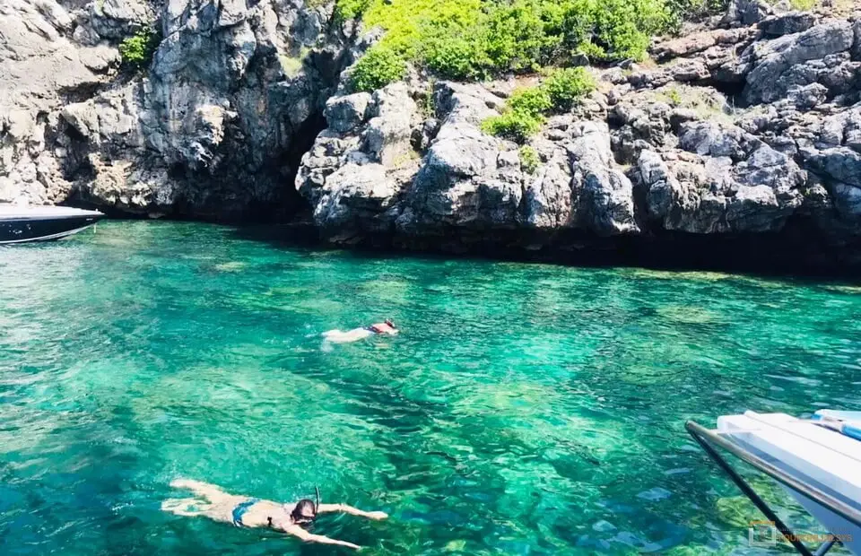 Explore with Insea Speed Boat Tour to Angthong National Marine Park’s hidden lagoons, white-sand beaches, and Emerald lagoon lake. Snorkeling among the shallow coral gardens makes this trip very popular and fascinating. Angthong National Marine Park translates as ‘golden bowl’, occupies almost 250 sq km and includes 50 sq km of limestone islands and cliffs which rise from the sea as dramatic and bizarre rock formations.