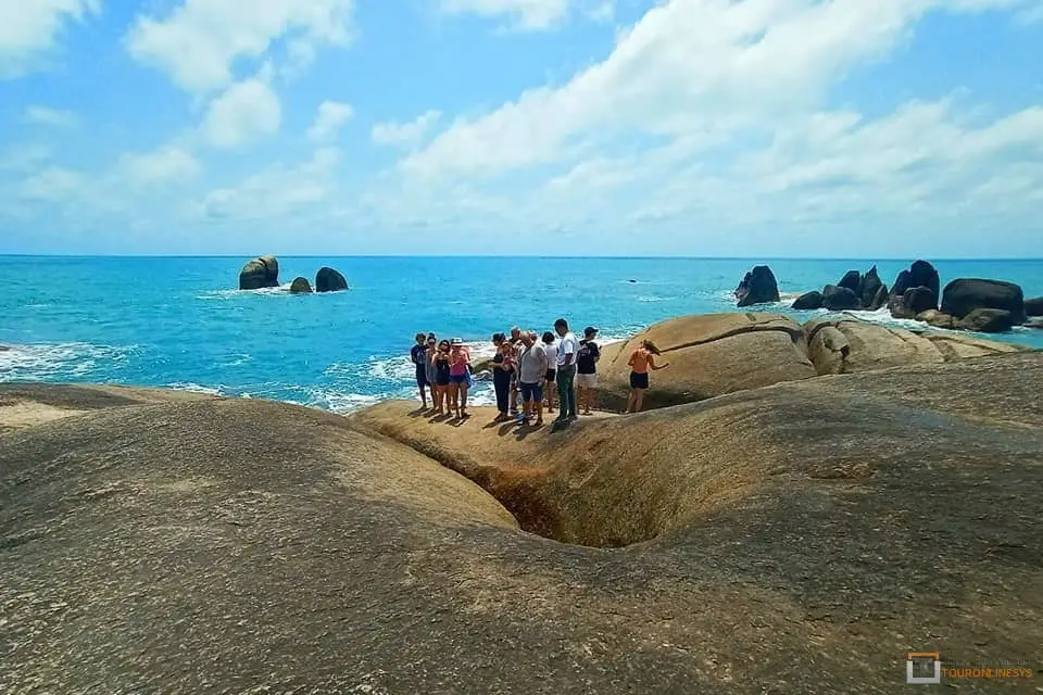 * Grandfather and Grandmother Rocks, a famous tourist site in Koh Samui known as Hin Ta and Hin Yai, away from Lamai Beach. There are two famous granite rocks-better known as “Grandmother & grandfather rocks” shaped like female and male genitalia. love of a young man and lady end their life together during the big storm and a symbol of their love was turning like that.