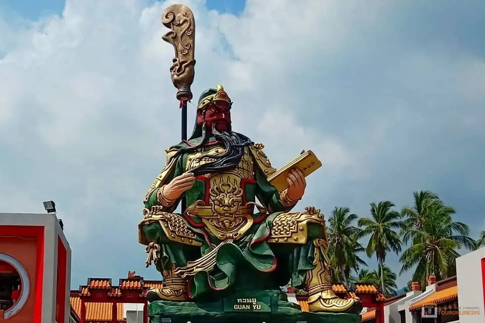 The temple is known for its large statue of Guanyin, the goddess of compassion and mercy, which stands in the middle of a lake. The statue is surrounded by smaller statues of Buddhist deities, as well as a bridge leading to the temple’s main hall.