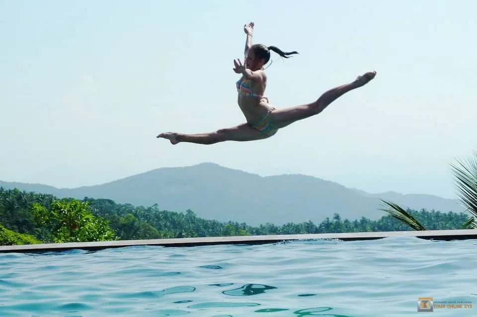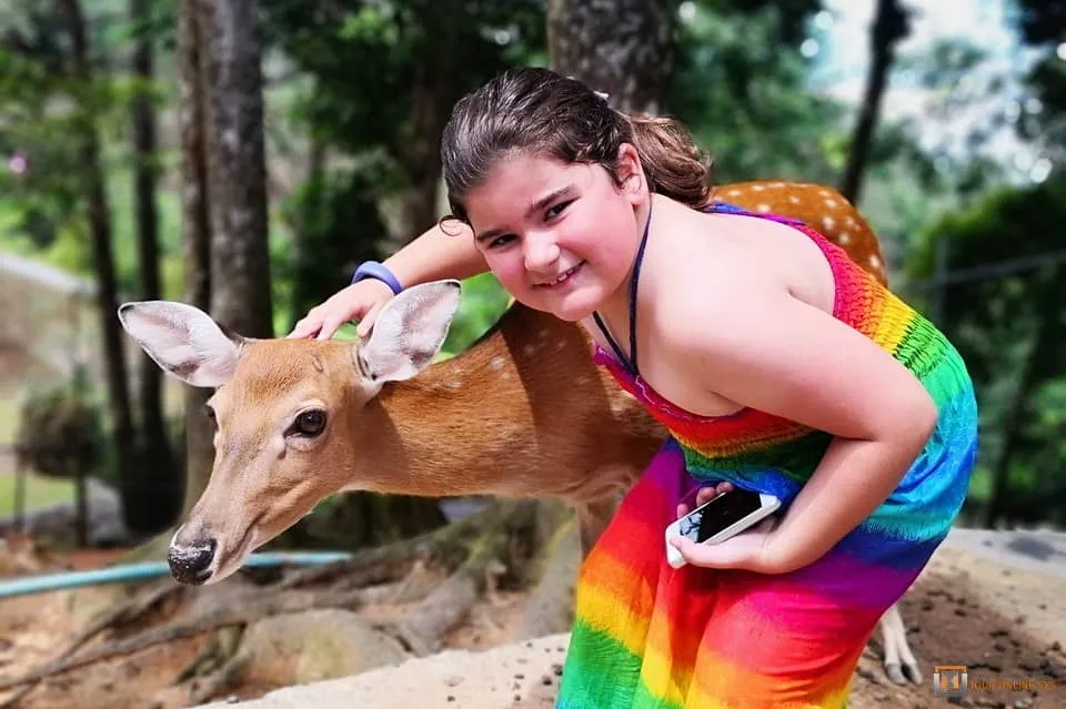 Climbing up such steep mountain paths so high will definitely pay off. They will meet you in a very friendly way, show you around, they will give you a baby gibbon to hold in your arms, or they will place a talkative macaw on your shoulder, they will hand you a treat for you to feed a deer right from your hands. After a trip to the park, you will visit a restaurant with one of the most picturesque panoramic views on the island. And that’s not all! ‘Paradise-Park” also boasts a wonderful swimming pool, which absolutely all the quests can’t help liking. Just imagine diving into the cool water of the pool at such a height and with such a view! Most guests decide to spend here the whole day, and in the evening they enjoy an unforgettable sunset right from the pool.