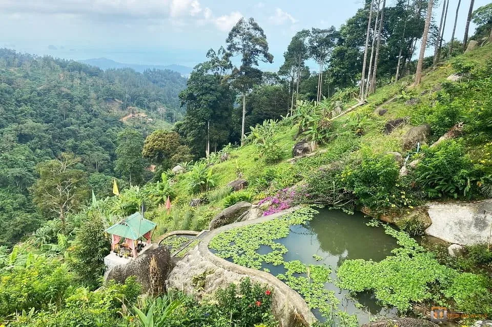 Samui day trip to “Paradise-park” will always give you plenty of impressions. And it’s not only about its ‘free’ inhabitants. This paradise garden, which takes up about 8 ha, is situated on the mountain Pom (Pom Mountain), the highest one on the island, from where you can see breath-taking views of the coast of Koh Samui, nearby tiny islands, and the vast ocean, merging with the equally vast sky. The park itself is also very picturesque with its shady tropical vegetation, flower oases, winding and, by the way, quite steep walking paths. Everything looks neat and tidy, including animals and birds.