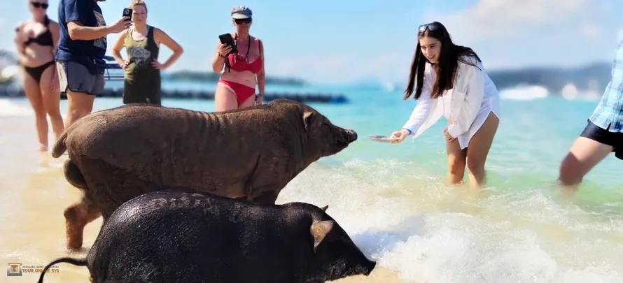 Koh Mad Sum, or Pig Island, is a small island in the Gulf of Thailand. It is part of the Samui Archipelago, a group of islands that includes Koh Samui and Koh Phangan. The island is known for its crystal-clear waters and white sandy beaches, and it is a popular destination for snorkelling, diving, and other water sports.
