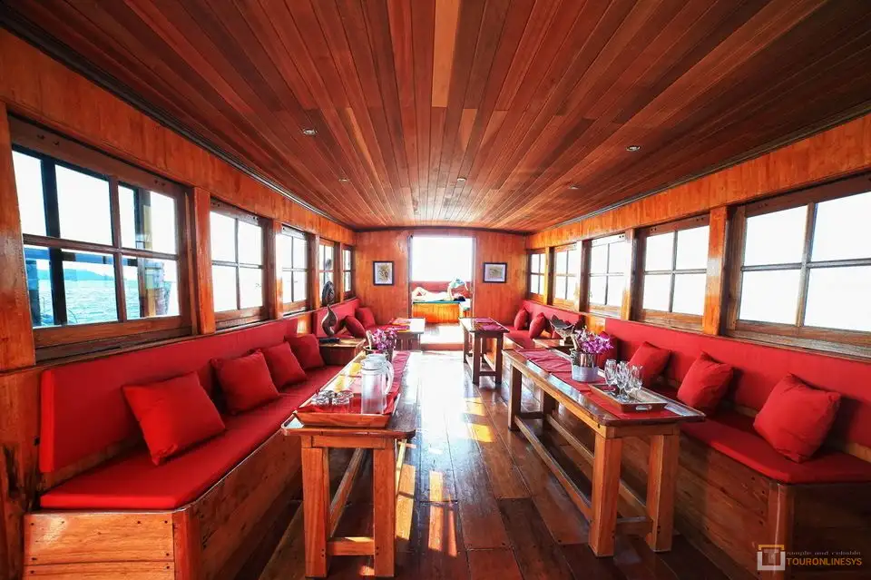 The Red Baron is a brand new traditional Sailing Junk Yacht. The Sailing Junk Yacht has been built by the famous Ship Yard Pernor in Suratthani. Made from Taken Tong, a very hard and strong wood. It is the biggest Sailing Yacht around Samui and the gulf. The elegant and traditional picture of the Yacht is impressing and enhances the bay of the famous “Fishermans Village” in Bophut. Safety and technical standards are set to an internationally recognized standard. The Red Baron is about 30m long and 6.5m wide, and 54 tons heavy. The boat is equipped with one engine of 385hp, has a 5000l fuel capacity and 5000l fresh water, and two generators. The Sailing Yacht could easily serve about 100 passengers however we restricted the capacity to 40 to serve passengers’ convenience and maximum comfort. You will be impressed with the space on the Yacht. Characteristic and impressive are the twin mast and huge traditional Thai style sails, beautiful and very functional. -Upper Deck: Cockpit. Sun Deck with 10 sunbeds with cocktail tables, massage beds, and towels. The huge sails provide sufficient shadow if wanted. -Main Deck: Open Air Dining Area with massive wooden table, 16 wooden chairs, and side benches with upholstering, additional comfort for about 10 passengers. -The Red Baron Buffet Bar to chill out and enjoy your food. -Covered salon with beautiful wooden tables and comfortable benches for about 18 passengers. -The Red Baron Lounge Open Air Lounge, covered, spaces for up to 8 passengers. Here we will offer you a nice Cigar, Cognacs, Whiskys, Vodkas, and selected wines. -Fishing Platform with 3 fishing seats and equipment and two outside showers. -Below Deck: Engine room, electric room Two house style toilets and a shower room. The front is prepared to build 4 luxurious double suites.